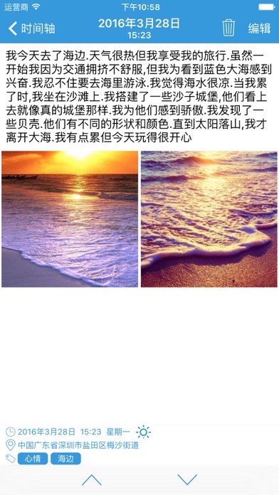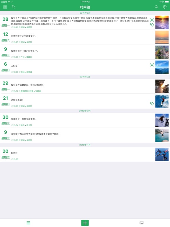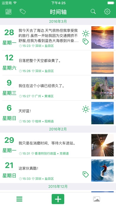简约不简单 --零点日记 ●●●●●●功能特性●●●●●● ● 时间轴 - 以时间轴的方式展示您的日记 ● 照片墙 - 您的照片将以照片墙的方式展示 ● 隐私密码 - 指纹和密码保护您的日记 ● 字体大小 - 调节字体大小 ● 主题更换 - 4种主题色彩可供选择 ● 提醒 - 可设置每日定时提醒您写日记 ● 搜索 - 全文搜索 ●●●●●●VIP特性●●●●●● ● 照片备份 - 备份你的照片以防止丢失 ● 字体更换 - 更换字体 ● 主题更换 - 超过20种主题 ● 导出 - 可导出日记到电子邮箱 ● 多个提醒 - 可设置多个提醒Apple 已更新此 App 以显示 Apple Watch App 图标。 Bug fixed