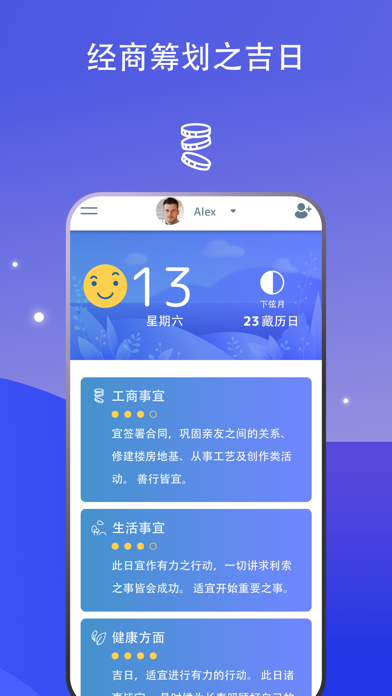罗布日历应用程序基于古代西藏占星学,被医生和僧人、普通藏人和达官贵人使用。 现在,这些知识已经适应了现代世界,并且可供所有对占星学和西藏文化感兴趣的人使用。 每日星座运势将帮助您计划事务和旅行,为他们选择最好的日子。 它还关心您的健康,影响日常生活、商业活动和沟通。 您将收到有关外部环境的商业、健康和占星描述的每日建议,以及农历日的建议。 我们为您添加了个性化的每月和每年的预测! 日历应用程序为那些想知道适合理发的农历日子的人提供建议。 西藏占星术使用与欧洲不同的计算系统。 农历的开始与太阳日的开始一致,因此您可以轻松使用农历。 在星座图中,您不仅可以为自己找到建议,还可以为您的朋友和家人找到建议。 为此,只需输入他们的出生日期即可。 您可以根据最古老的占星系统之一的建议来规划生活中重要领域的业务。 日历非常适合提供有用的建议。 在做出重要决定时,请考虑您自己的情况。 免费日历有有利和不利的日子、理发和旅行的日子以及月相。 您可以阅读一般准则并添加第二人称的数据。 在高级版中,您可以看到为自己提供的所有个人建议。 您还可以按出生日期将无限的朋友添加到您的帐户,并查看他们的个人星座。 藏族每日生肖农历“诺布”具有以下特点: - 按出生日期计算的个人每日星座运势 - 2027 年之前的年度预测 - 每个月的指标 - 针对健康状况、商业活动和外部环境的个人建议 - 能够按出生日期添加亲人的个人资料:方便共同规划事务 - 藏历2024年和每日星座运势、十二生肖 - 农历最适合理发的日子 资料来源: 门子康医学与占星研究所 陈振宁教授 诺尔布 西藏天文学和占星学:简介。 Men-Tsee-Khang(达赖喇嘛尊者西藏医学和占星研究所)达兰萨拉,1995 年。 南开诺布仁波切。 关键是藏历的使用。 M.,“Rinchen-Ling”,1998。 南开诺布仁波切。 仲、德乌和苯教。 古代西藏苯教的传统、语言和文字。 M.,“Libris”,1998。 Bod gshung sman rtsis khang。 藏文年度历书。 达兰萨拉。 1999-2000。 菲利普·科尔努《西藏占星学》。 香巴拉出版社 1997年。 西布尔斯基 V.V. 东亚的阴阳历。 “瑙卡”,1988。 南开诺布仁波切。 西藏度亡经。 英石。 圣彼得堡,《象雄》,1999。 南开诺布仁波切。 出生和生活。 藏医学概论. 圣彼得堡 - 莫斯科,《象雄》,2000。 和别的。 您将在应用程序设置中找到完整列表。 如果您愿意帮助翻译成其他语言,发现错误或不准确之处,请写信给我们: 隐私政策 https://sites.google.com/view/norbu-tibetan-calendar/privacy-policy help@tibetancalendar.com设计已更新,现在颜色更鲜艳,生活更美好!祝您在2025年新的一年里好运!