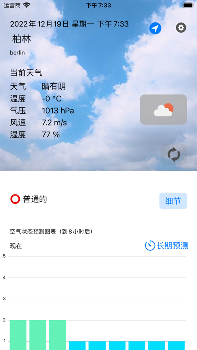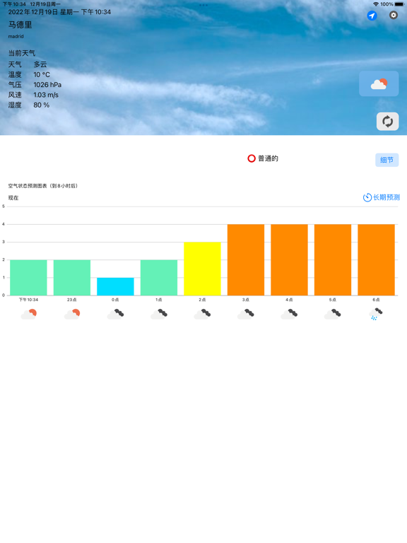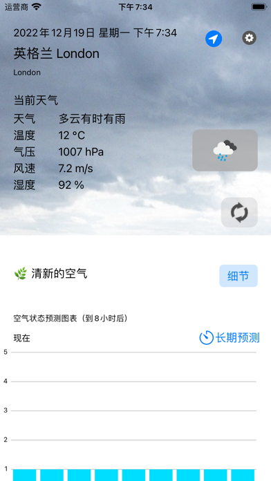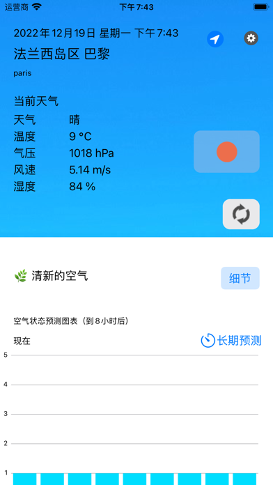 提前24小时通知您空气环境(空气污染)的测量和预报。 请将其用于日常的身体状况管理和过敏对策。 (如果您启用位置信息,将自动获取您当前位置的天气信息。) ・实时通报PM2.5、PM10(含花粉、黄沙)等空气污染物! ・最多可确认24天后的空气污染程度预报。 ・全世界都可以使用! 您可以在居住国以外的地方以同样的方式使用它 ・从 OpenWeatherMap 获取实时天气数据修复了检索天气信息时出现的错误。
