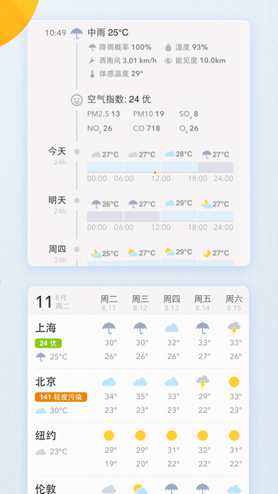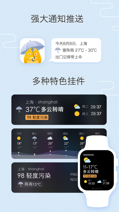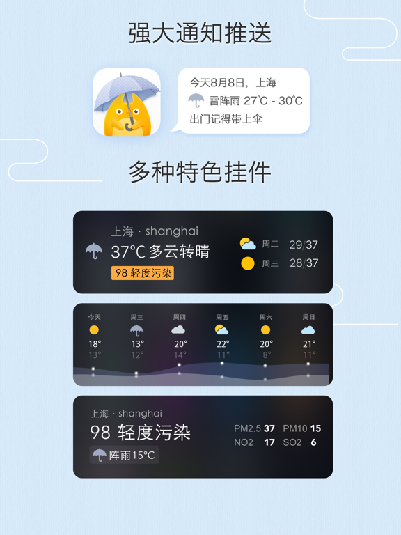 「我的天气 · MyWeather」是一款精致而强大的天气 App,为你提供实时温度、空气质量,十日天气预报,精准分时趋势。强大天气推送,覆盖中国 3000+ 市县、全球 200000+ 城市。专为 iPhone & iPad 设计,更有众多精心手作的定制主题。 =特别亮点= · 精准数据:十日天气预报,分时趋势,多数据源综合显示 · 全国空气质量指数 · 强大推送:今日明日天气预报、空气质量、灾害预警即时送达 · 预报列表:亲友天气、世界城市同屏展示 · 所有风格都在里面:精心打造定制主题,黑夜、像素、唐风,季节限定主题 · Apple Watch:清晰简洁的信息架构 · 多平台:针对不同屏幕尺寸特别优化 · 分享是美德:多种分享方式,还可写下心情感悟 iDaily · 每日科技荣誉出品 -------------------------------------- * 您可在程序设置中启用「后台更新推送城市」,程序将每 6 小时更新一次地理位置。 -------------------------------------- 关于程序内提供的「按月订阅」「按年订阅」功能: 您可以在程序内使用 iTunes 自动续订功能获取会员专属功能,我们提供「每月 CNY ¥3」「每年 CNY ¥30」套餐。 确认购买后,将会从您的 iTunes 帐户中收取费用。您可以在每个周期结束至少 24 小时前取消下个周期的订阅,每个周期结束 24 小时内将会自动续订,已订阅的周期将无法取消。 隐私保护政策:https://clover.ly/privacy 用户使用协议:https://m.icity.ly/tos· 优化小组件在最新系统的显示效果 =最近更新= · 上新一枚乙巳年 Pro 专属图标 · 适配 iOS 18 系统深色/自定义色调模式图标与小组件 · MyWeather 大部分城市现已支持十五日天气预报