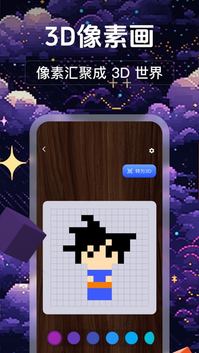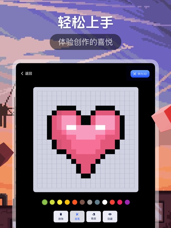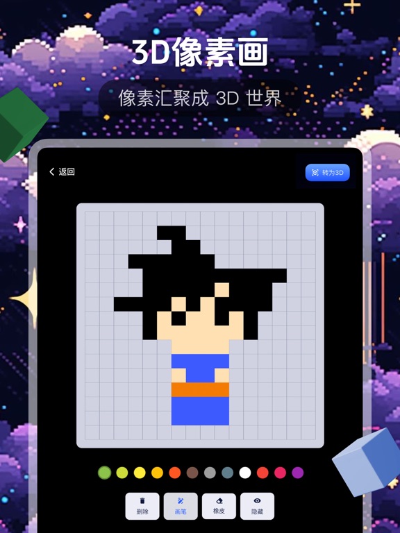 3D像素画是一款极具创意与趣味性的绘画工具应用。这款应用独特之处在于,它能将您精心绘制的像素画作巧妙地转化为栩栩如生的立体3D模型,为您的创意插上飞翔的翅膀。 使用3D像素画,您无需担心复杂的操作过程。它的界面设计简洁直观,让您轻松上手。无论您是初次尝试绘画的新手,还是有一定绘画基础的爱好者,都能在这款应用中找到属于自己的乐趣。此外,3D像素画适合各个年龄段的用户,无论是孩子还是长者,都能在这里发挥想象力,创造出属于自己的3D作品。 在创作过程中,3D像素画不仅能帮助您锻炼智力和空间想象力,还能成为您减压消遣、打发时间的好帮手。当您沉浸在绘制像素画的乐趣中时,会不自觉地忘记烦恼和压力,享受创作带来的愉悦。 值得一提的是,3D像素画在转换像素画为3D模型时,呈现出惊人的效果。您可以亲眼见证自己的作品从平面的像素画蜕变为立体、生动的3D模型,这无疑会给您带来极大的成就感。这种神奇的转变,让您在创作过程中不断收获惊喜。 总之,3D像素画app是一款极具想象力和创造力的像素画板工具,它让像素画创作变得更加有趣和生动。如果你也是一个热爱像素画的人,那么不妨试试这款app,相信它会给你带来全新的创作体验。 - Fixed payment crash issue on iOS 18.2