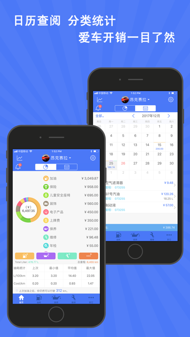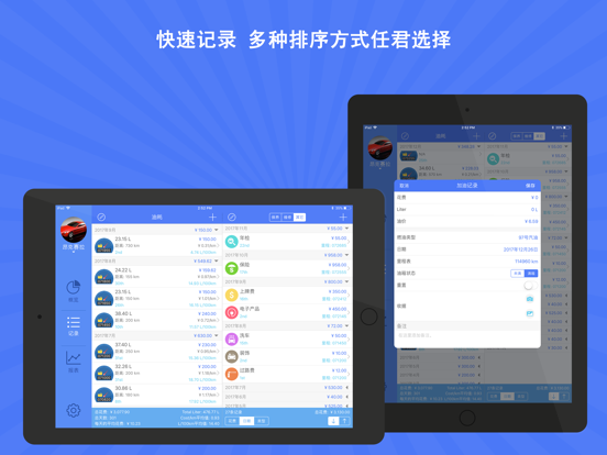 这是一个简单而又全面的应用,用于跟踪您的汽车的油耗/电动汽车的电耗和其他费用。 使用此应用跟踪汽车的加油/充电记录,包括里程表,加油费用/充电费用、价格,花费,日期,收据等,维修记录,保养记录和如保险,停车场,车辆清洁等其他费用。 该应用程序可以计算油耗/电耗,如每升的里程,每公里的花费,每天的花费等;您也可以把油耗/电耗的单位设置成您想要使用的。 它还提供了非常全面的费用报告,您可以按照类别、时间、保养类型、维修类型、费用类型和趋势进行查看。 主要功能: 燃油/电: ⁃ 跟踪加油/充电的记录,包含日期、费用、价格、加油量/充电量、里程表、与上次加油/充电相比的距离、油箱状态/电池状态、收据和其他备注信息。 ⁃ 自动计算油耗/电耗。 ⁃ 自定义里程表、加油量/充电量和油耗/电耗的单位。 ⁃ 按月份给记录分组。 ⁃ 按月查看加油费用/充电费用。 ⁃ 方便地添加,编辑和删除记录。 保养: ⁃ 跟踪保养记录,包含日期、花费、收据和保养类型等。 ⁃ 按月、花费金额或类型查看记录。 ⁃ 方便地添加,编辑和删除记录。 ⁃ 自定义保养类型和其保养间隔通过里程表和时间。 ⁃ 通过日期或里程表间隔设置每个保养的提醒。 维修: ⁃ 跟踪维修记录,包含日期、花费、收据和维修类型等。 ⁃ 按月、花费金额或类型查看记录。 ⁃ 方便地添加,编辑和删除记录。 ⁃ 自定义维修类型。 其他: ⁃ 日历模式下的花费。 ⁃ 跟踪保险,停车,洗车,收费和税收等费用。 ⁃ 分别跟踪无限制的车辆。 ⁃ 对于车辆花费的八份报告。 ⁃ 查看每个类别的总费用。 ⁃ 从Dropbox或iTunes将数据导入此应用。 ⁃ 通过电子邮件导出PDF,CSV或HTML格式的数据。 ⁃ 密码保护功能。 ⁃ 自定义单位和货币。 ⁃ iCloud和Dropbox备份还原。 ⁃ 支持通用版本。 如果您有任何疑问或建议,请发邮件到 yqapps@tom.com。⁃ 兼容了iOS 18。 ⁃ 修正了一些小问题。