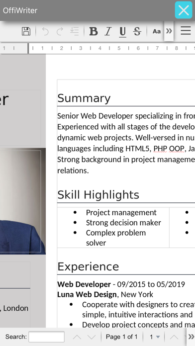 OffiWriter OpenOffice作家的文档编辑器 下载