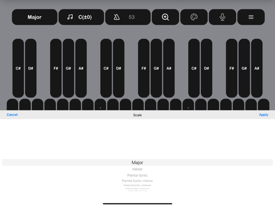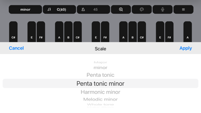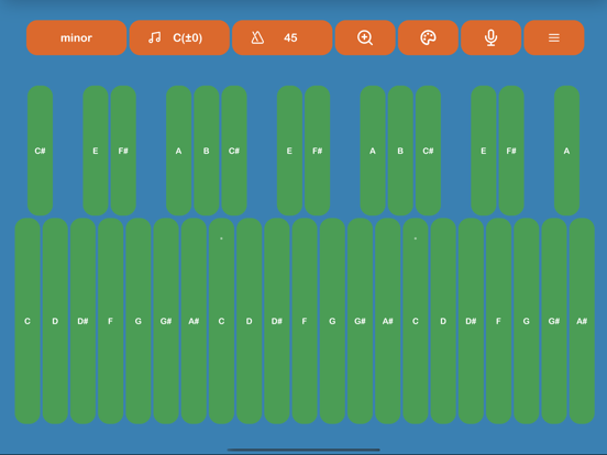 这个应用程序是用来检查和练习你的歌声的音高。它也可用于乐器的调音和作曲。试试美丽的以ZEN为主题的UI设计,没有任何浪费,以及一个又一个版本的精致可用性。 ---- 各种各样的音乐音阶 节拍器 录音 彩色主题 音准调整 键盘音阶 改变键盘标签(CDE、Do Re Mi等)。 ---- 大调音阶 小调音阶 五声音阶 五声部小调音阶 和声小调音阶 旋律小调音阶 全音音阶 大蓝调音阶 小蓝调音阶 西班牙音阶 米南小调音阶 琉球音阶