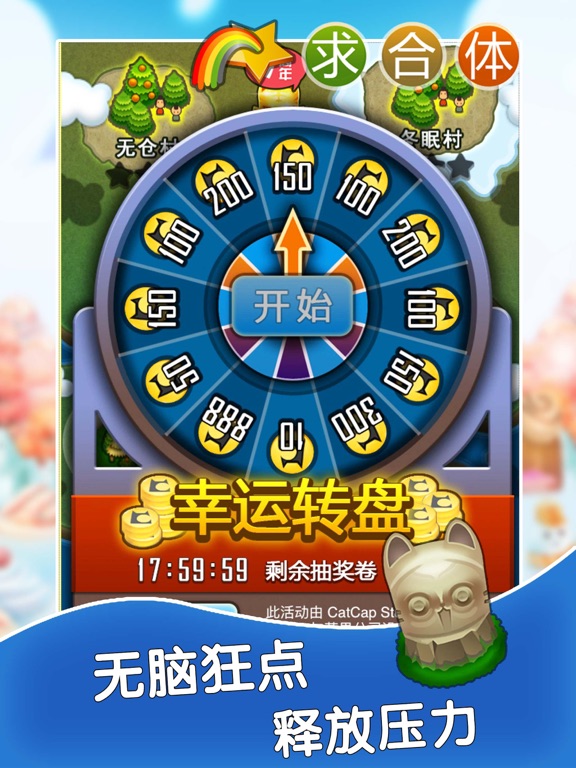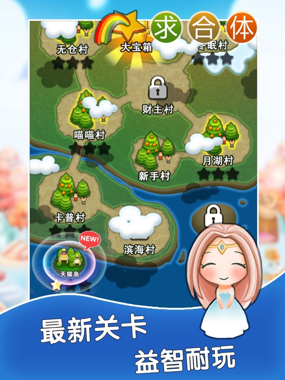 很怀念的单机三消游戏!让人欲罢不能的休闲益智体验! 这是一个充满爱的村子,名字叫三里屯。在这个爱意浓浓的村子里,居民们的生活快乐又安宁。直到有一天,玩家将掌管这片土地,为这片土地的人们带来更加幸福的生活。当然,只有玩家驾临这个村子之后,才会明白:只有真正的合体,这个村子才会有更加光明的未来。 《求合体》以合体为主题的全新游戏,每一株草丛、每一幢房屋、每一只猫咪都时时刻刻哭喊着求合体,一切都取决于玩家的旨意,一切都决定于玩家的安排。玩家的每一位子民,都在等待英明的合体决定。问题修复及相关优化